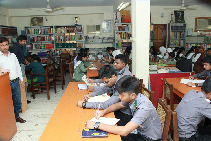 The college has a rich library. Students use the library in the tiffin period, Students of full-time schooling after lunch and residential students in the afternoon. The library is enriched with newspapers, magazines, periodicals along with textual, co-textual, story, novel and general knowledge books. We have now 25,000 books in the library. The library is fully air conditioned.